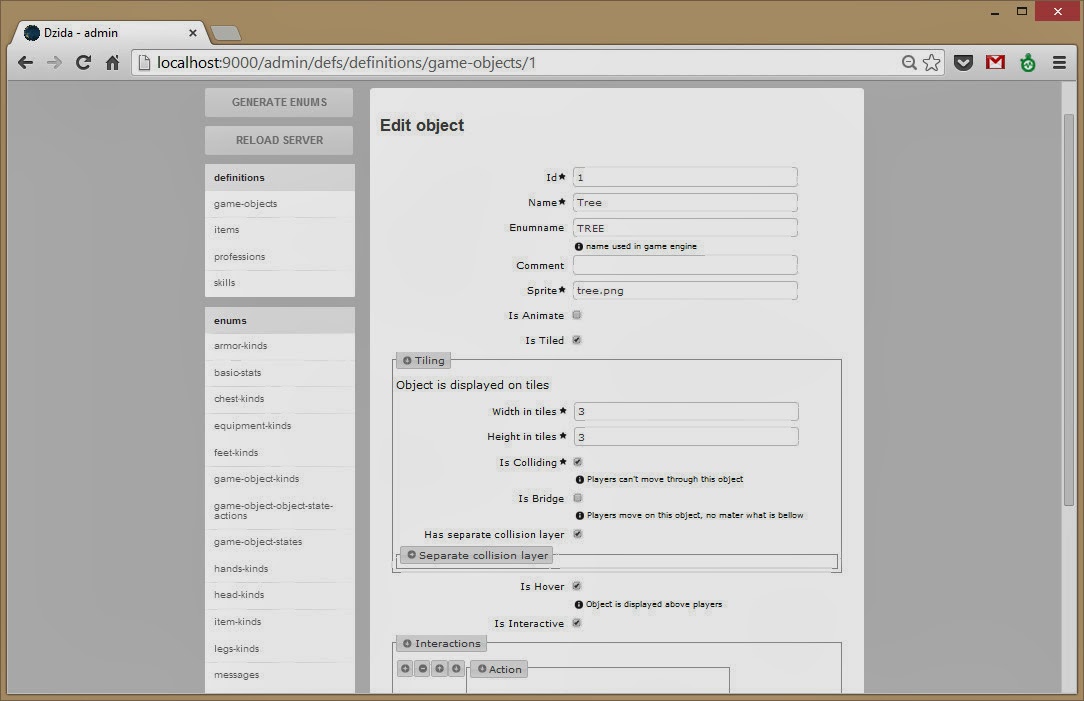 Edytor wykorzystuje bibliotekę alpaca, która z Json Schema generuje wszystkie fromularze, dzięki temu, oraz restowemu iterfejsowi serwera, edycja lub dodawanie nowych typów danych jest niesamowicie proste. Wystarczy edytować/stworzyć schemę danych.